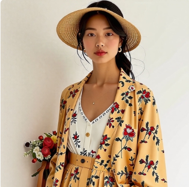 - 봄: 파스텔 톤의 플로럴 원피스나 밝은 색상의 자켓이 잘 어울립니다.