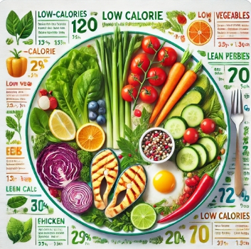 - 단백질: 닭가슴살, 두부, 생선 등은 칼로리가 낮으면서도 단백질이 풍부합니다.